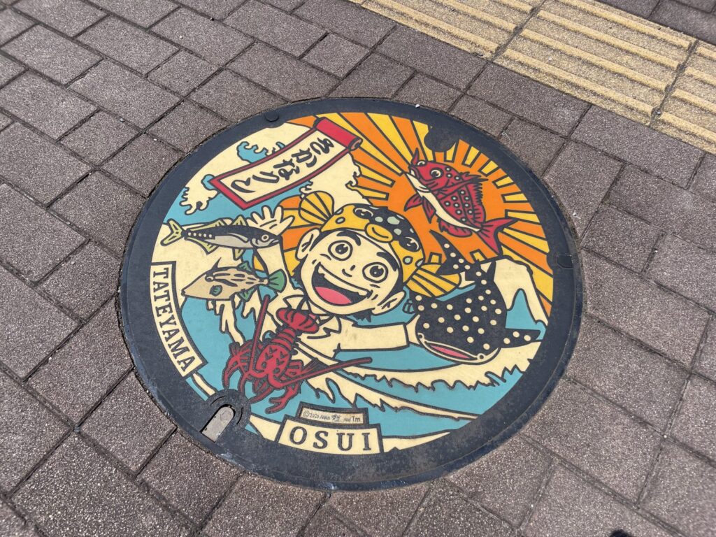 1、2枚目は館山の「渚の駅たてやま」付近で見つけたものです(マンホールまでさかなクンが描かれています)。