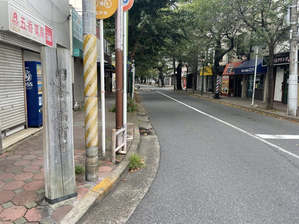 歩いていくと、常盤平駅の近くで日本の道100選の碑がありました。